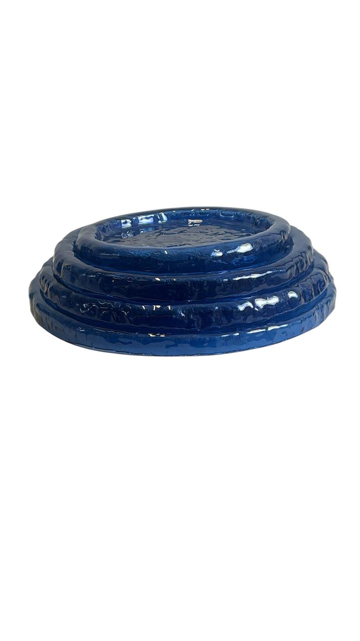 This unique and colorful plate is crafted from high-quality glass, ensuring durability and style. The vibrant blue color stands out, making it an eye-catching piece in any setting.