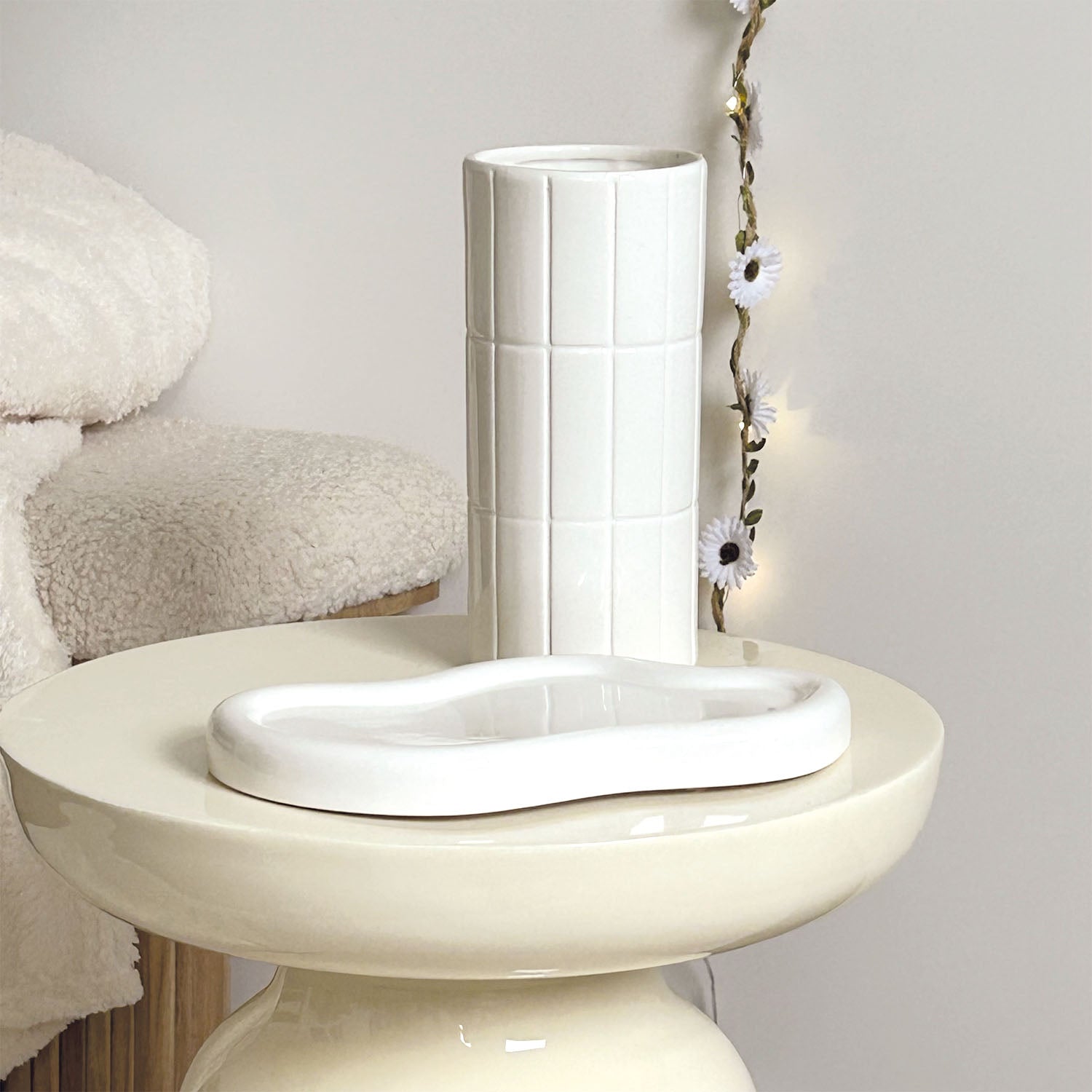 The White Osmose Catchall Tray features a sleek, modern silhouette in smooth white ceramic, perfect for organizing keys, jewelry, or small essentials. Its unique organic shape adds a contemporary touch to any space, while the glossy finish enhances its decorative appeal. Ideal for entryways, bedrooms, or living rooms, this tray blends functionality with elegant design to elevate your home decor.