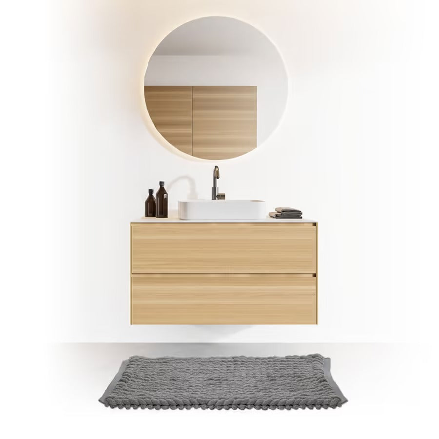 Available in sophisticated grey and white colors with a rectangular format, it fits perfectly into modern bathroom aesthetics. Its dimensions (W. 75 x D. 50 x H. 2.1 cm) are ideal for standard bathroom spaces, providing ample coverage without being intrusive.