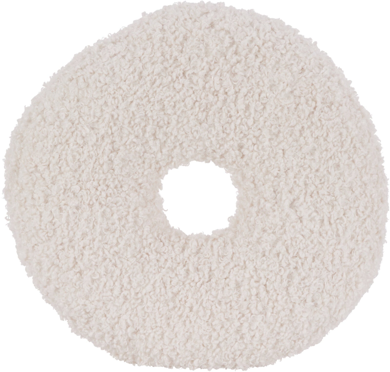 Cushion Donut features a donut shape in teddy fabric crafted from polyester knitted for a plush, curly texture; measures 35x35 cm. Soft, tactile surface adds cozy visual warmth to sofas, beds or reading nooks. Available in Off-white, Sand, Taupe to blend with neutral interiors and seasonal decor.