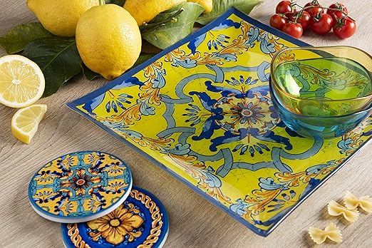 Unique Features: Inspired by Sicily, this tray features stunning earthenware-like designs and vibrant colors in shades of red, yellow, and blue. These colors reflect the warmth and beauty of the Mediterranean landscape – from the Sicilian crest to the azure sea.