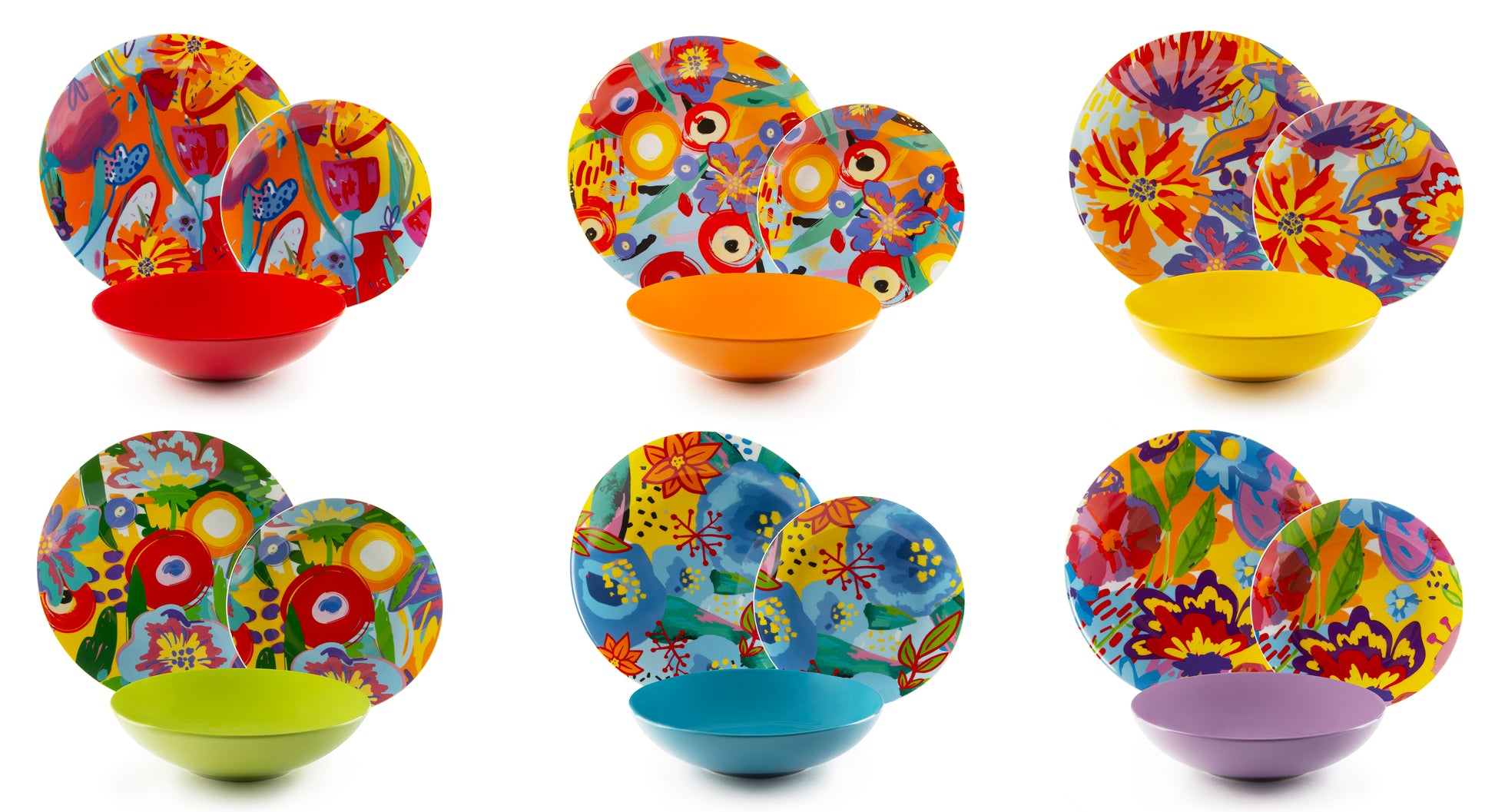 - Sizes: 6 flat plates Ø 27 cm, 6 soup plates Ø 20.5 cm, 6 fruit plates Ø 20.5 cm