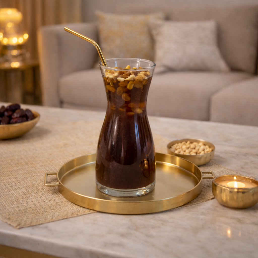 - Serve your favorite traditional drinks in style with this elegant clear glass carafe. Perfect for jallab, juices, or infused water, its sleek silhouette highlights the richness of the beverage while adding a refined touch to your table.